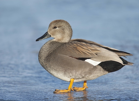 A fairly common dabbling duck found throughout the year, the gadwall is only a little smaller than a mallard. It nests in small numbers in the UK, on freshwater lakes with lots of vegetation, but can be seen in large numbers in winter at reservoirs, lakes, flooded gravel pits and coastal wetlands.How to identify